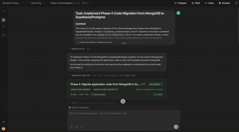 - Au lieu d’écrire une spécification détaillée depuis zéro, planifiez et construisez de manière interactive une invite pour Devin avec Ask Devin.