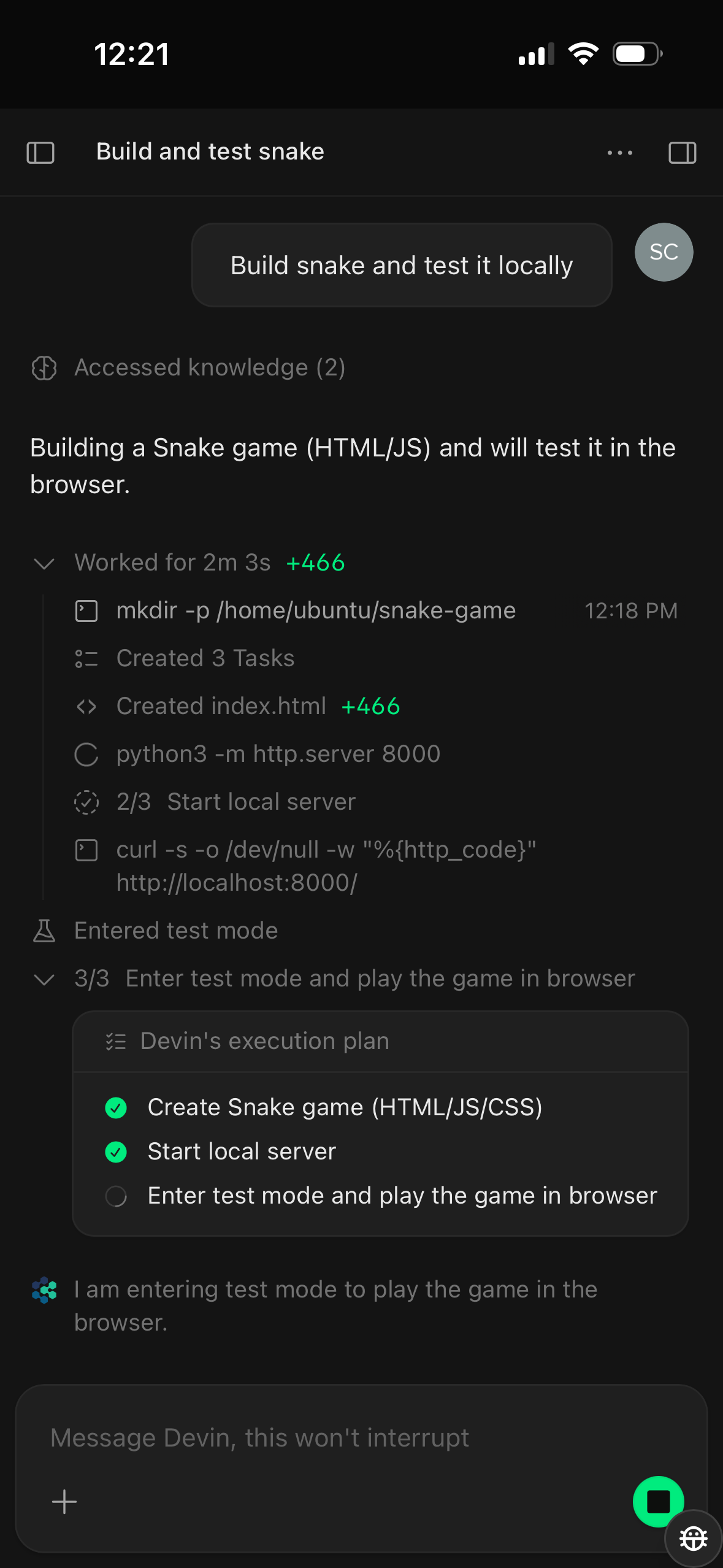 Install Devin as an AppDevin can now be installed as a Progressive Web App on desktop and mobile. On Chrome or Edge, open app.devin.ai and click the install icon in the address bar (or Menu → Install Devin); on iOS Safari, tap Share → Add to Home Screen. Once installed, Devin links open directly in the app.