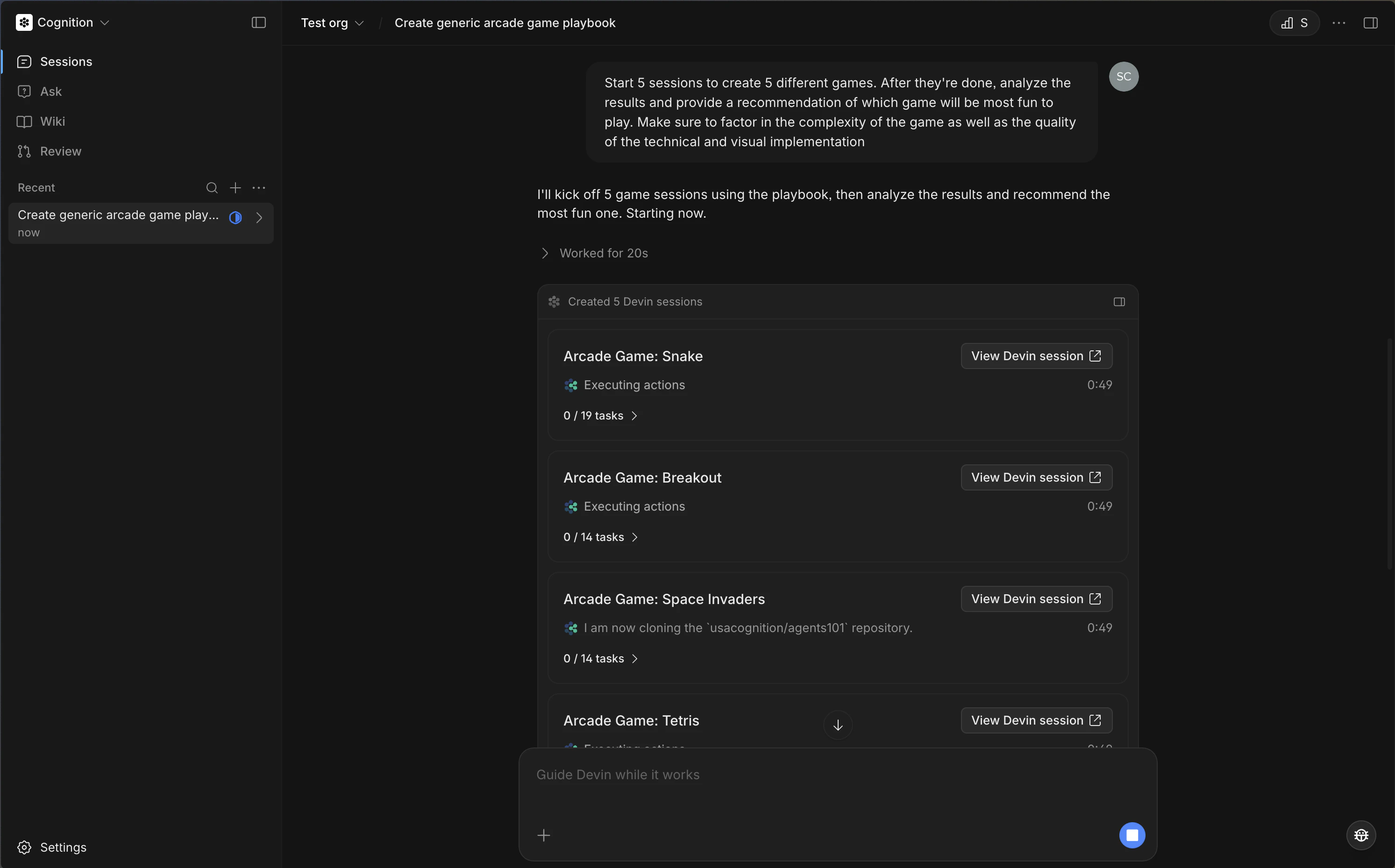 @提及 Devin 会话,在另一个会话中直接引用它们。